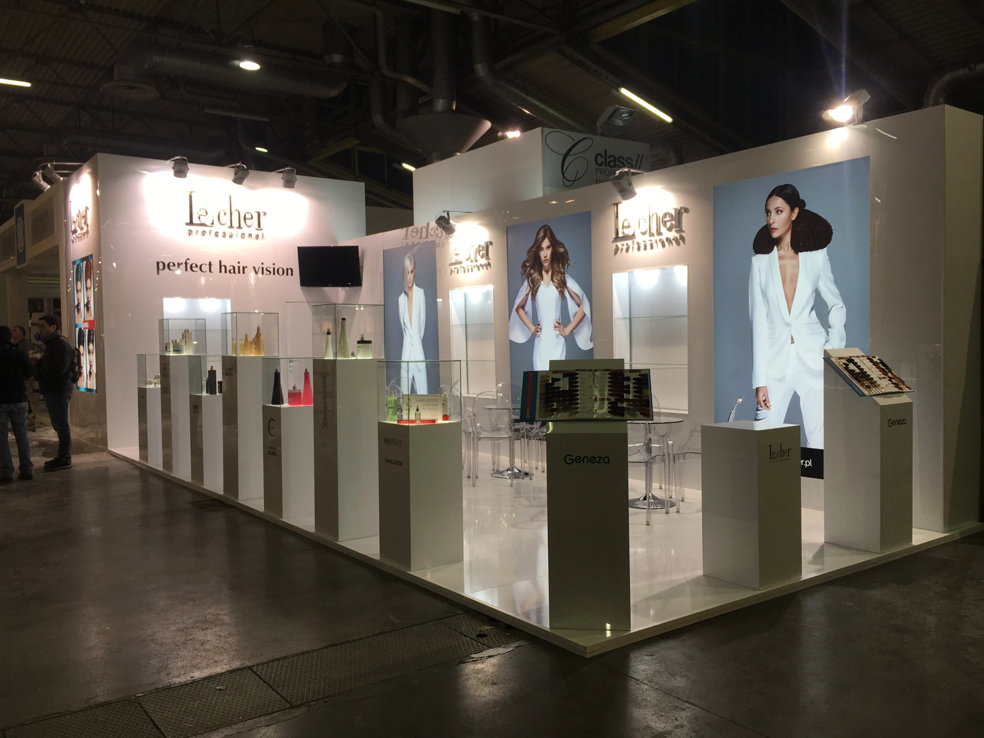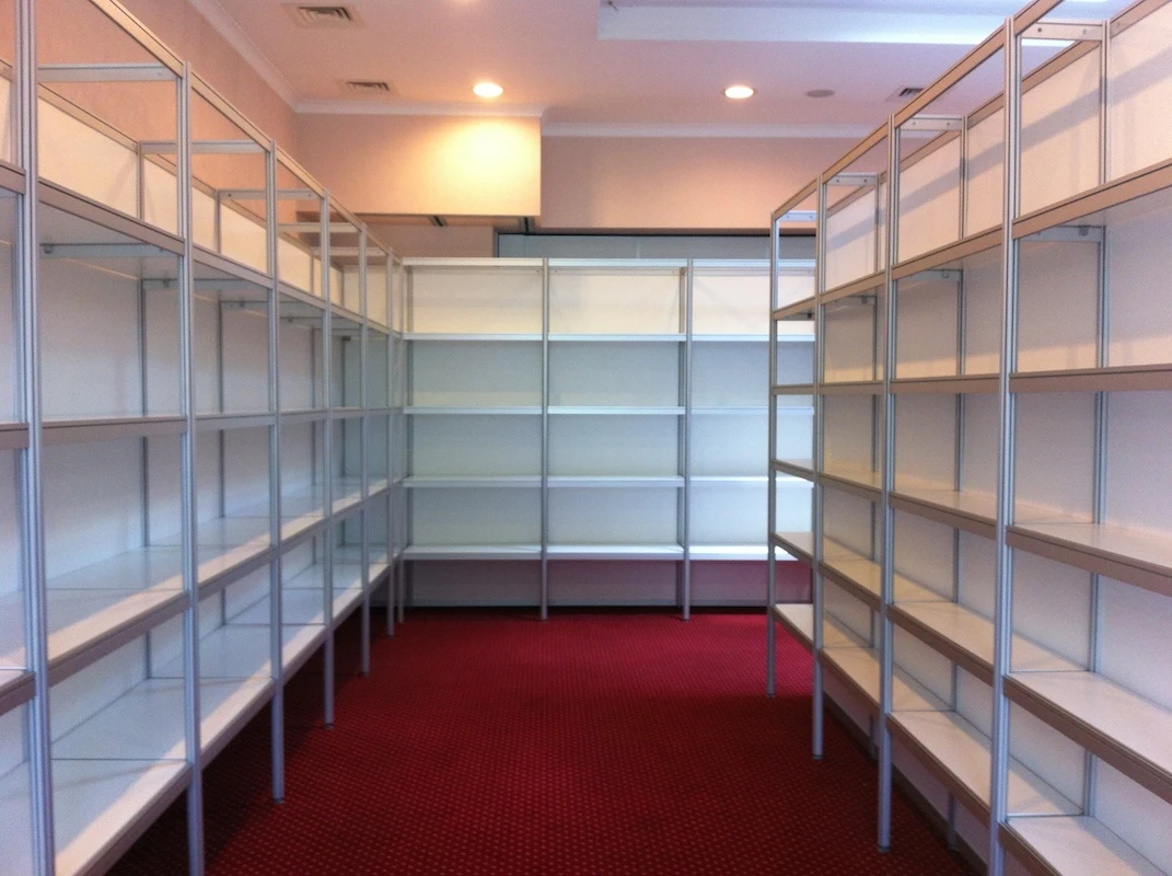 Prezentujemy modułowe wyspy z otwartymi narożnikami, które prowadzą ruch i eksponują linię produktów. Półki podświetlane LED podkreślają detale, a wysokie pylony porządkują strefy rozmów. Wariant wyspowy łatwo skalować w zależności od metrażu, także w układzie L. Konstrukcja utrzymuje porządek kabli i nośników, co sprzyja płynnej obsłudze. To gotowy zestaw na stoiska na targi i wydarzenia branżowe, gdzie naprzemiennie rośnie natężenie ruchu i zapotrzebowanie na szybkie interakcje.